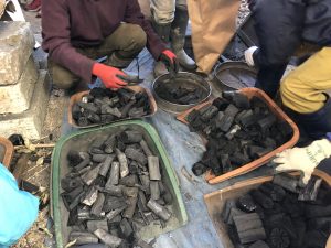そこで、参加の皆さんには、昨年の12月に焼いて今日取り出した炭を、お土産としてお持ちいただきました。