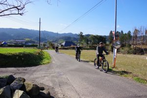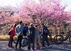 今日のガイドは、ウェルネスポーツ鴨川のスタッフ・小野。自転車の国際大会にも出た経験を持つエクストリーム(!)スタッフです。ですが、今日は女性の参加者が多く、e-bikeでの移動なので、のんびり楽しくガイドをします。