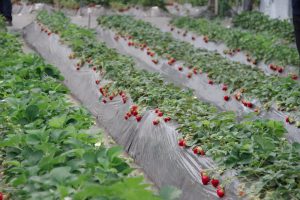 目の前に広がるきれいな畑、たわわに実ったいちごたち。