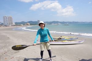 本来は、下の写真の先生みたいに、パドルで押して、ひとりで海へ出るものなんだって。