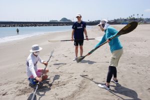 パドルの使い方を学ぶ。持つ位置や向きがあるんだ。僕はイメージトレーニングがうまくできなくて困った!